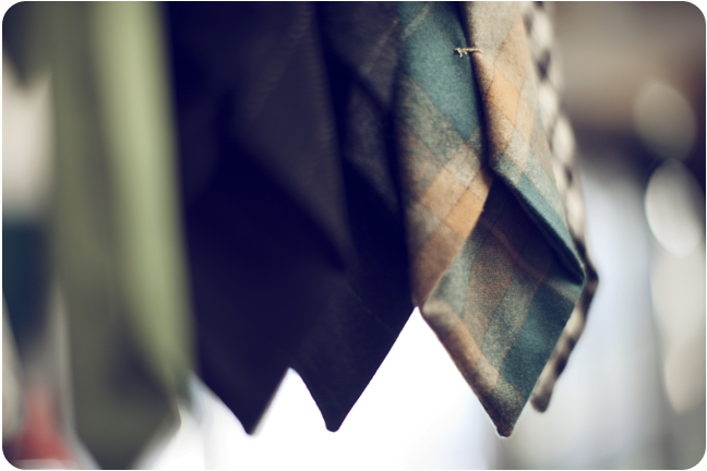 As for neckwear, like I said, I stumbled into it. It was never a conscious intention. Once I started making ties, however, I got caught up in the challenges of making the perfect tie; figuring out how to balance weight, thickness, and drape. There are actually a few different methods and variations to making ties. I haven’t tried them all, but I’ve found a method that I really like, and I still make small changes and experiments as I try to make the best possible ties out of a wide range of fabrics. I don’t wear a lot of ties, but once I started making them, I decided I wanted to make ties that are not like anything you would buy in most stores. No silk twill or polyester. No rep stripes or repeating logos or emblems. I’m not really into that kind of stuff. I like beautiful colors and rich textures. I want you to look at or pick up the tie and say ‘wow, I’ve never seen a tie like this one.’ But I don’t want it to be a spectacle in any way. I’m a man of practical tendencies. I want to make ties that are unique but accessible.