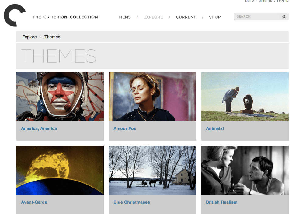 The Criterion Collection now allows you to explore their massive trove of films by theme. And it’s well designed. Give it a little look before you rent that next movie on iTunes (via Gear Patrol).