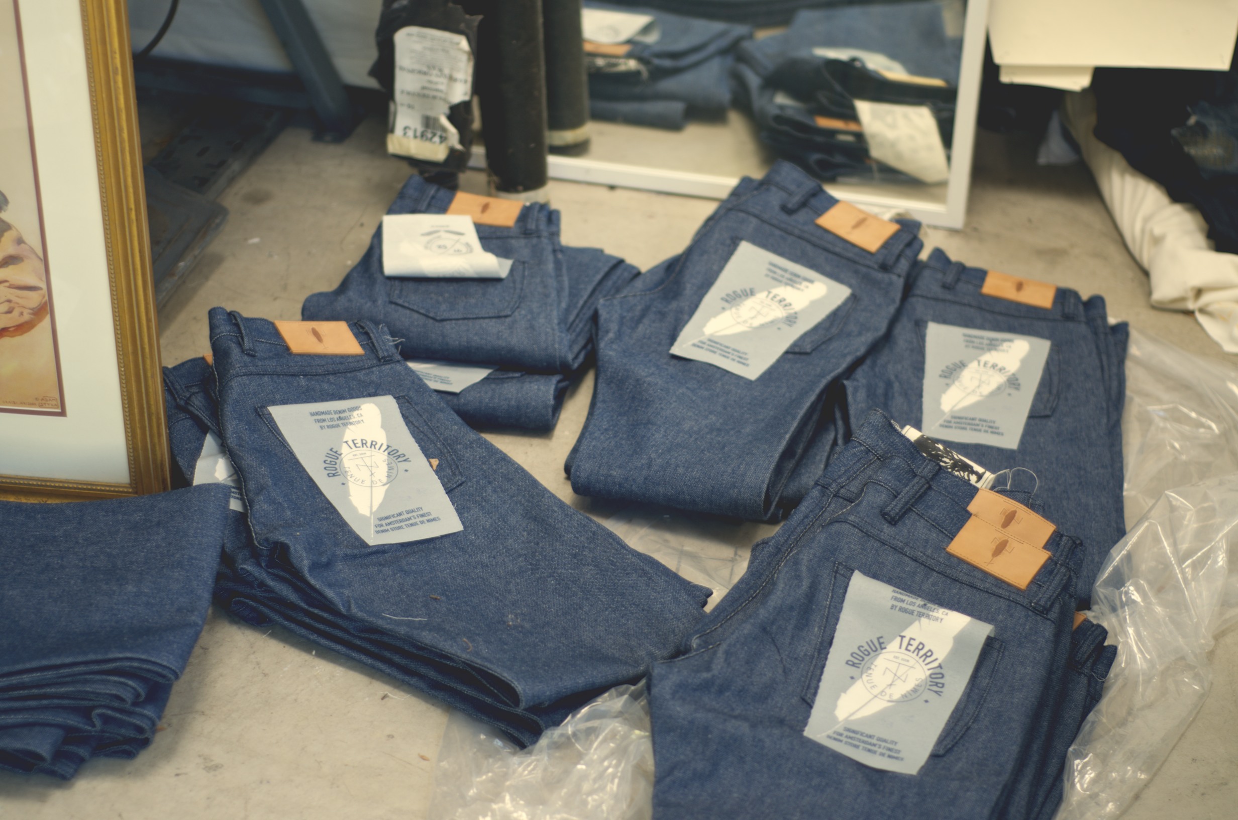 RT: After college I moved with a small marketing company to San Diego. I worked there for about 2.5 years and was feeling unfulfilled. My wife (girl friend in the SD days) was feeling the same way about her job and was applying to business schools on the East and West Coast. When she got into a school in LA and NYC it was a toss up. I honestly think that it was that one decision that really altered the course of my/our lives. So, we moved to LA. I don’t have a job, Leslie’s about to start school and we’re doing some ‘back to school’ shopping. We come across American Rag’s Denim Bar, where I was indirectly introduced to the world of ‘custom jeans’. At this time, I am a super denim nerd, obsessed with my 1947 LVC 501s and PBJ 007s. The concept of custom jeans got me super excited, so I tracked down the dude that was running it asked him if I could apprentice under him. The next day he gave me the crash course in pattern making, and sewing and left it up to me to figure out how to make a pair of jeans. About 2 weeks later I made my first pair. It wasn’t enough to just make one pair. I wanted to continue doing it. I made a pair for Leslie, my Mom and Dad, brother and sister and I didn’t want to stop. I was already on the second pair for myself when my Mentor tells me he has to close down the business and go find a job…this was at about the 3 month mark. All this time nothing was being done with the American Rag space so I jumped at the opportunity to take up residency there. I offered custom jeans and denim alterations. I was there 7 days a week cutting, sewing and drafting patterns. I guess you could say this is where Rogue Territory was born.