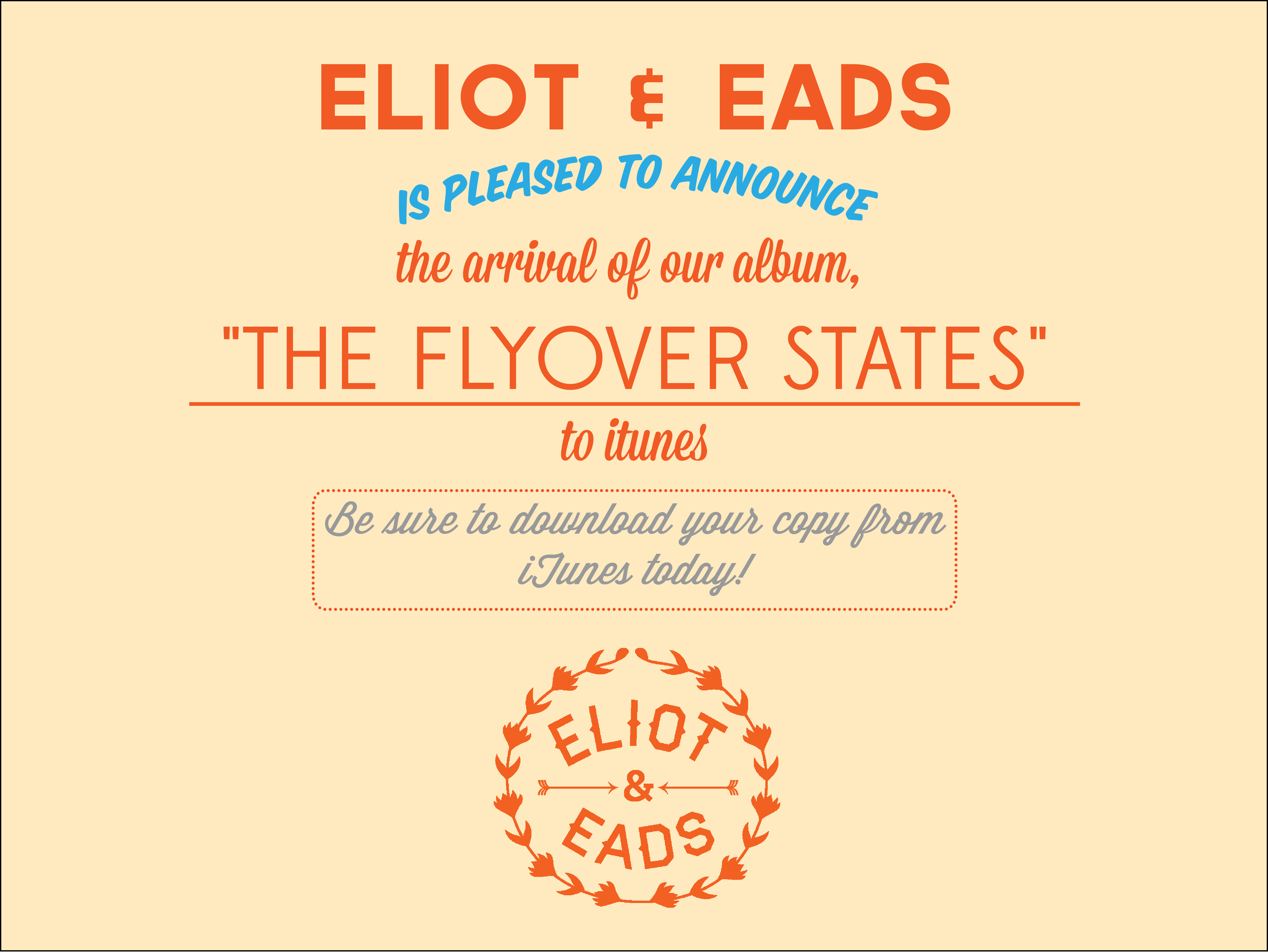 After many, many months of work, Eliot & Eads’ record “The Flyover States” has been released on iTunes. We’ve talked about it plenty of times and shot several videos for the group and now the album is yours to purchase. You can read more about the band here.
